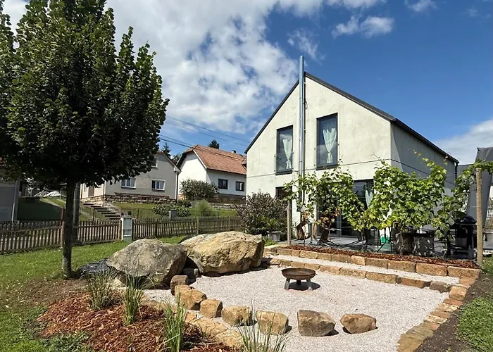 Az 1 hálószobás Domek U Raje Bystřice villa ingyenes privát parkolót és teraszt foglal magába kertre néző kilátással.